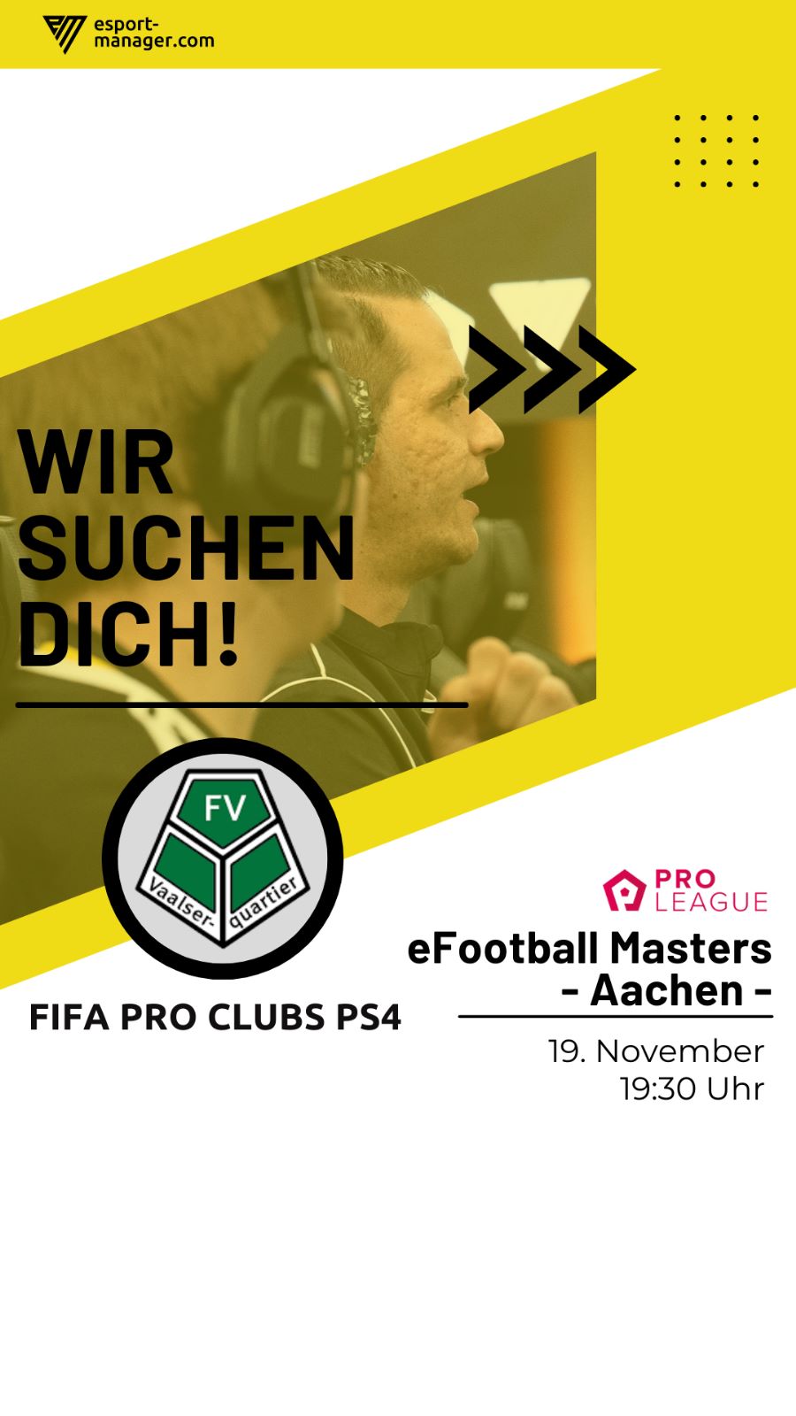 Die Organisation ESport-Manager veranstaltet am 19. November ein offenes EFußball-Turnier. Moritz Jonas vertritt die Organisation und hat uns eingeladen an dem Event teilzunehmen.